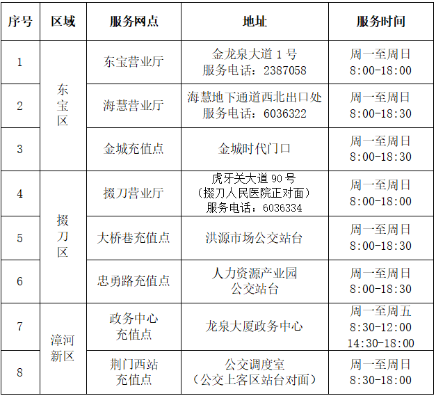 (一)服務(wù)網(wǎng)點(diǎn)一覽表